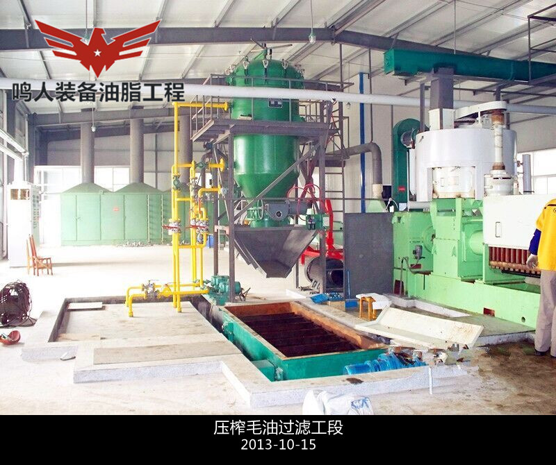 工藝流程:原料→除雜→破碎/壓胚→蒸炒調質→壓榨→過濾→毛油